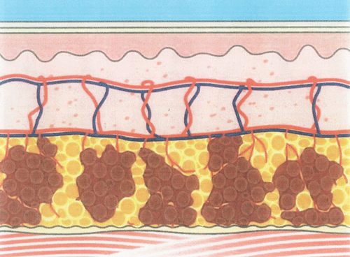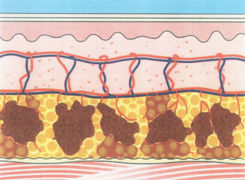*立体的なかたまりセルライトは、血管や神経を圧迫しています。